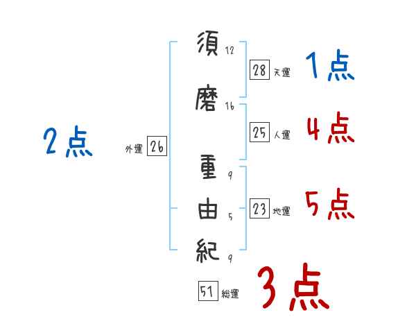 須磨重由紀さんの画数の鑑定結果