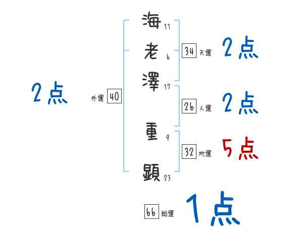地運![]() | 海老澤重顕さんの地運は32画の5つ星!柔軟性があり成功する。チャンスが多く金運が良い。 個性を表す基礎的な運勢です。性格形成や対人関係、行動力など家庭環境に影響されます。主に誕生してから20歳くらいまでの若年期の運勢を表します。 |