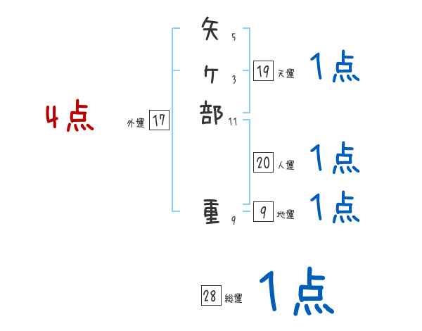 矢ヶ部重さんの画数の鑑定結果