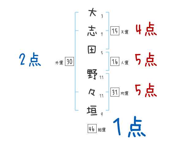 大志田野々垣さんの画数の鑑定結果