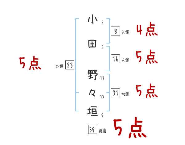 小田野々垣さんの画数の鑑定結果