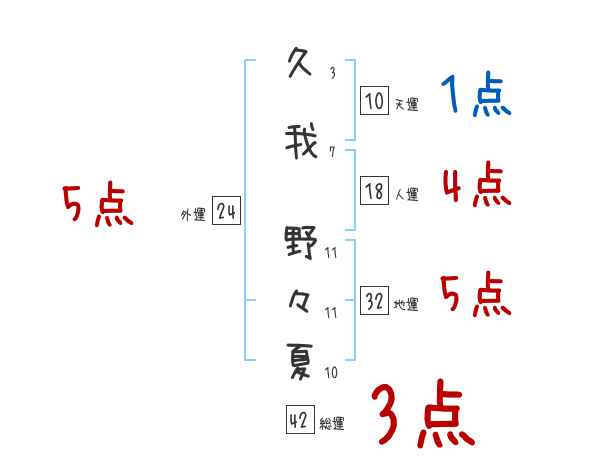 久我野々夏さんの画数の鑑定結果
