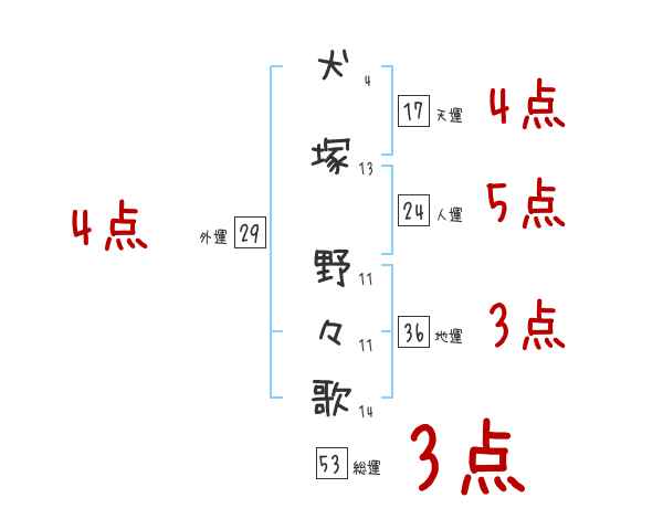 犬塚野々歌さんの画数の鑑定結果