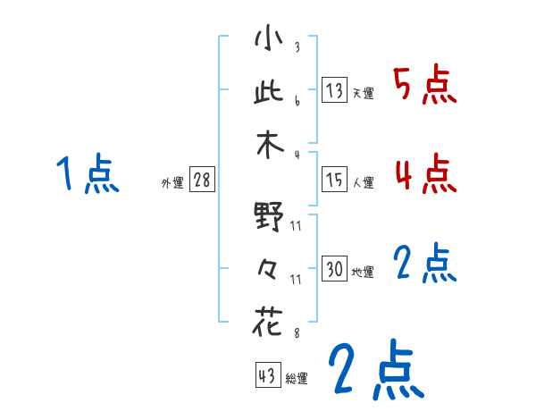 小此木野々花さんの画数の鑑定結果