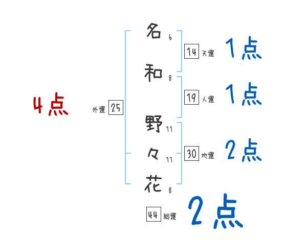 名和野々花さんの画数の鑑定結果