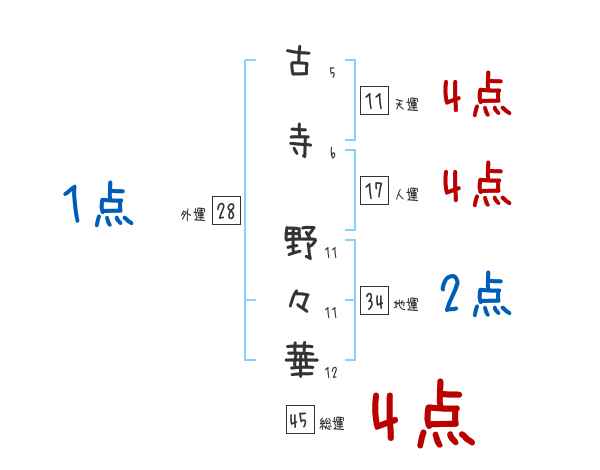 古寺野々華さんの画数の鑑定結果
