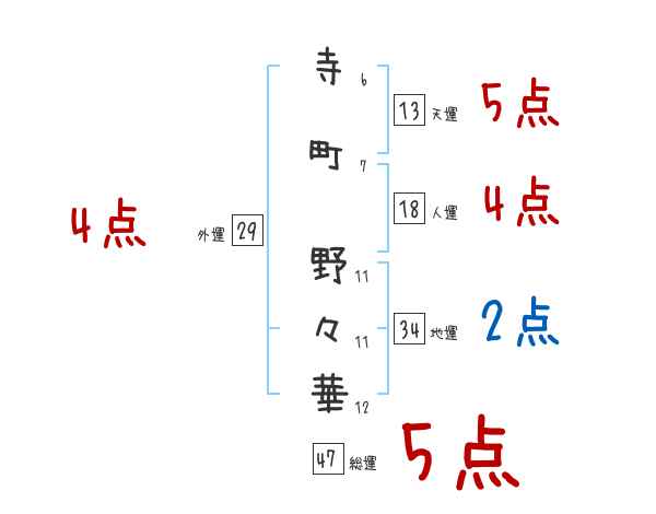 寺町野々華さんの画数の鑑定結果