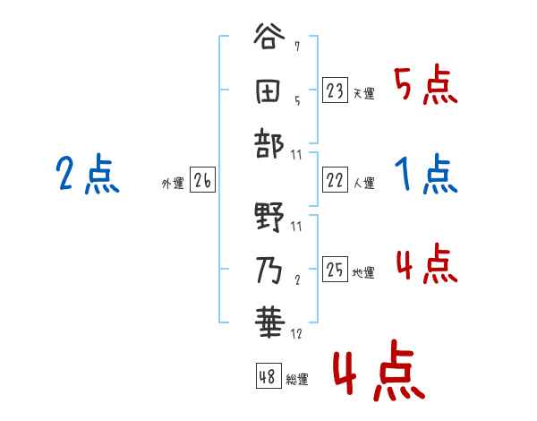 外運![]() | 谷田部野乃華さんの外運は26画の2つ星!波瀾万丈かも。信頼できる人を大事にしましょう。 生活面を象徴する運勢です。外部から受ける影響力を表し、結婚運、家庭運や職場、環境への順応性を表します。 |