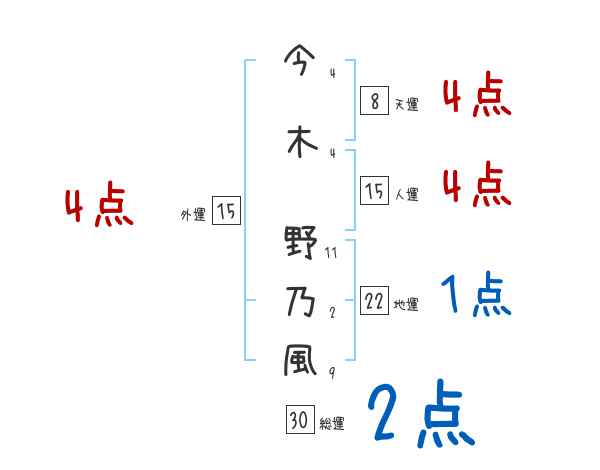 今木野乃風さんの画数の鑑定結果