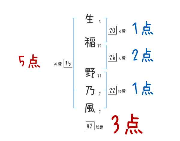 生稲野乃風さんの画数の鑑定結果