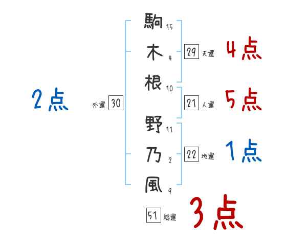駒木根野乃風さんの画数の鑑定結果