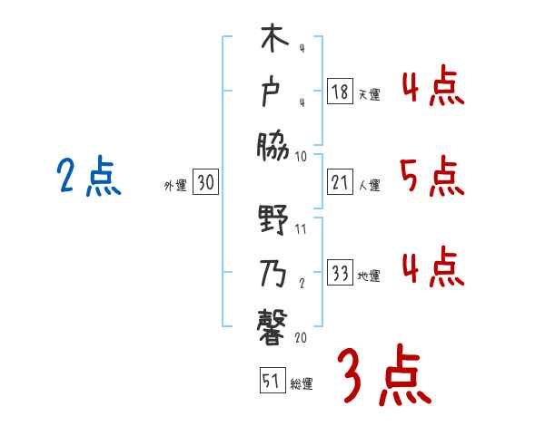 木戸脇野乃馨さんの画数の鑑定結果