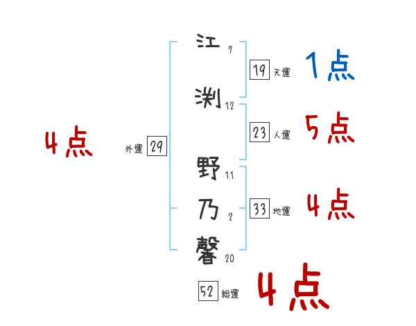 外運![]() | 江渕野乃馨さんの外運は29画の4つ星!完全主義で才能がある。厳格な心の持ち主。 生活面を象徴する運勢です。外部から受ける影響力を表し、結婚運、家庭運や職場、環境への順応性を表します。 |