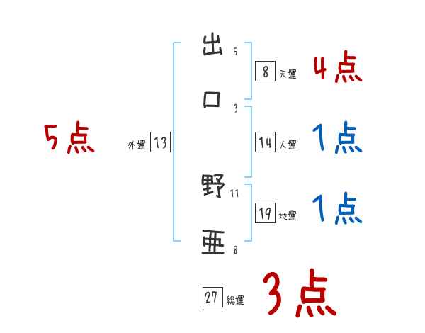 出口野亜さんの画数の鑑定結果
