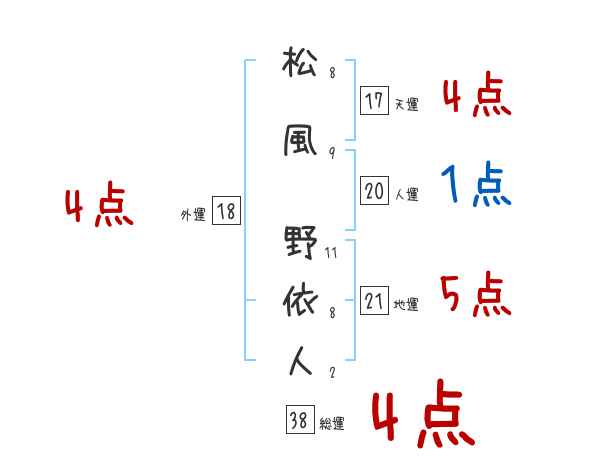 天運![]() | 松風野依人さんの天運は17画の4つ星!積極的な行動力。地位を気づき財産を手に入れる。純粋な心と直感力。 家系が持つ宿命的な運勢を表します。祖先から受け継いだ苗字ですので自分の力が及びません。家柄を象徴します。 |