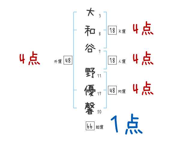 大和谷野優馨さんの画数の鑑定結果