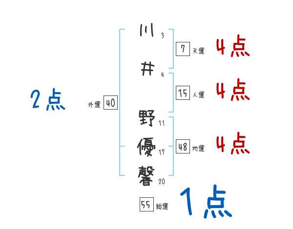 川井野優馨さんの画数の鑑定結果