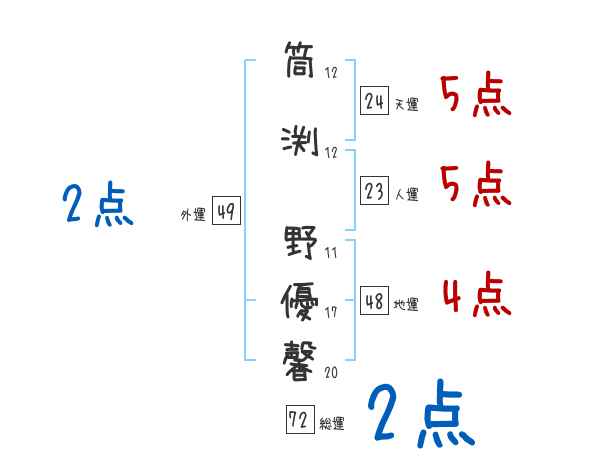 筒渕野優馨さんの画数の鑑定結果