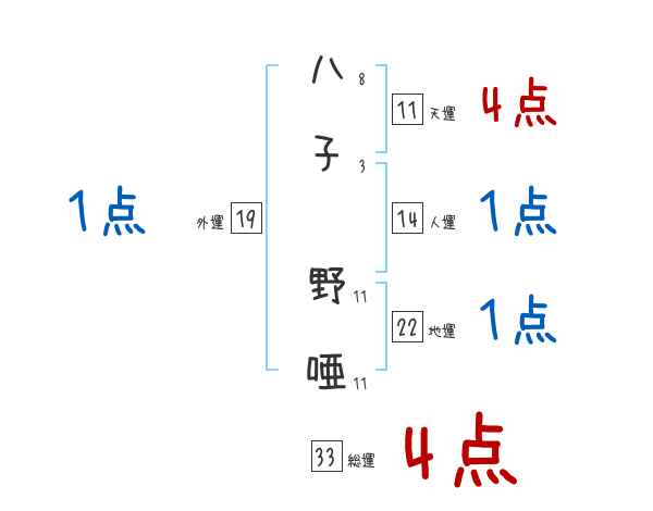八子野唖さんの画数の鑑定結果