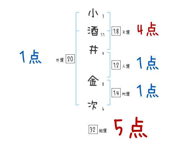 小酒井金次さんの画数の鑑定結果