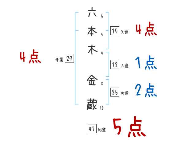 六本木金蔵さんの画数の鑑定結果