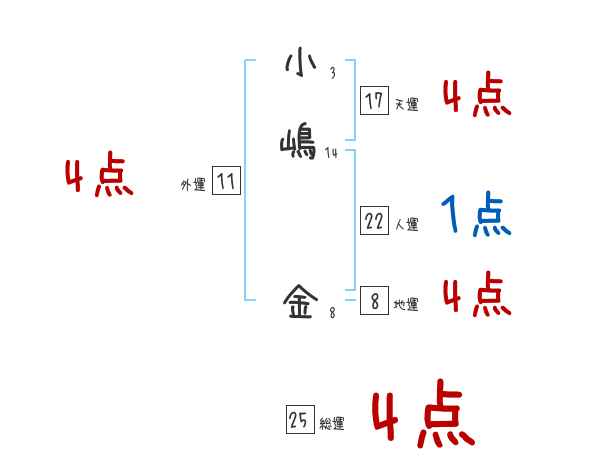 小嶋金さんの画数の鑑定結果