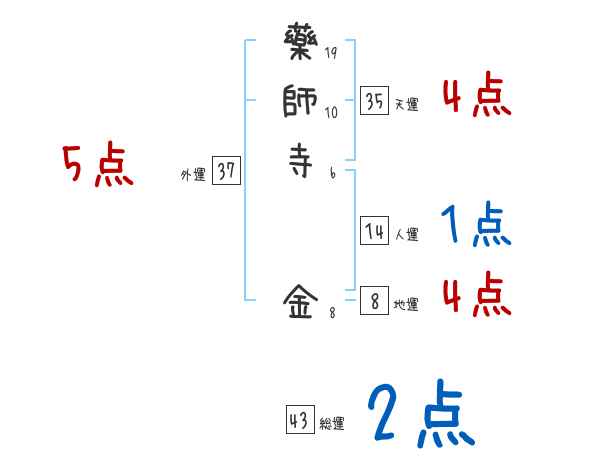 藥師寺金さんの画数の鑑定結果