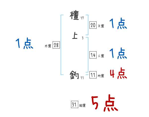檀上釣さんの画数の鑑定結果