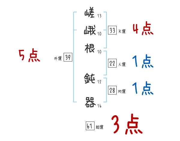 嵯峨根鈍器さんの画数の鑑定結果