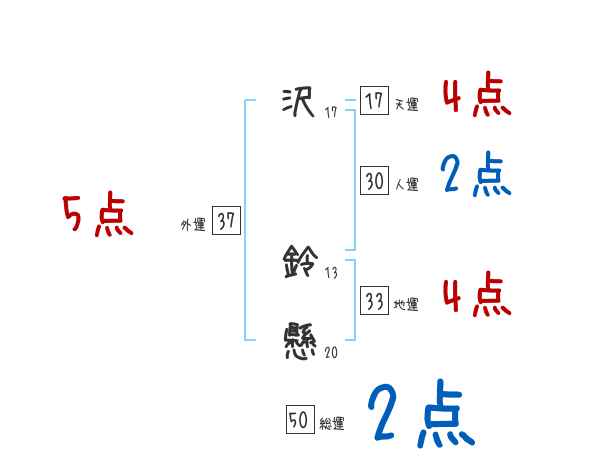 沢鈴懸さんの画数の鑑定結果