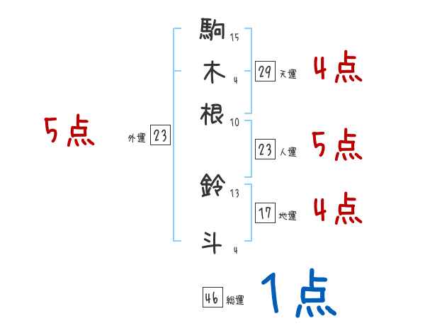 駒木根鈴斗さんの画数の鑑定結果