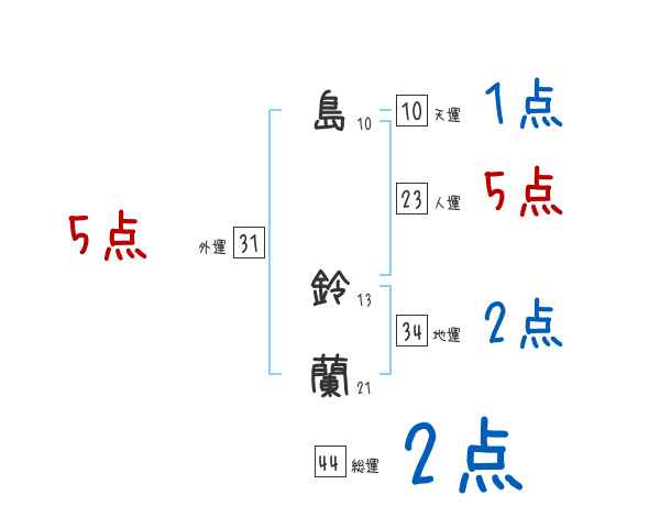 島鈴蘭さんの画数の鑑定結果
