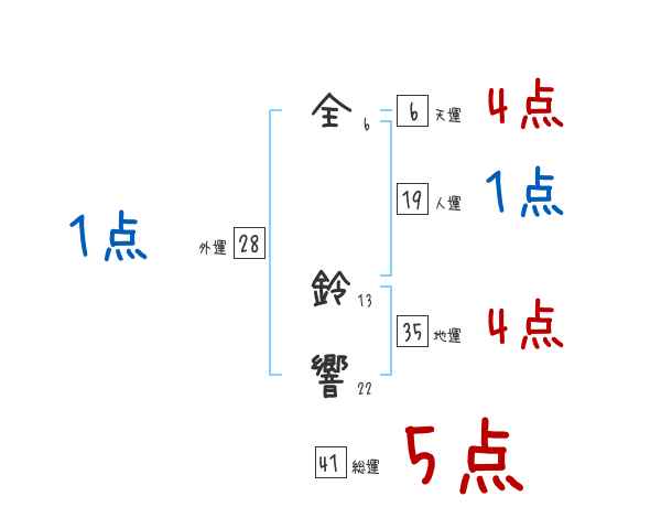 全鈴響さんの画数の鑑定結果