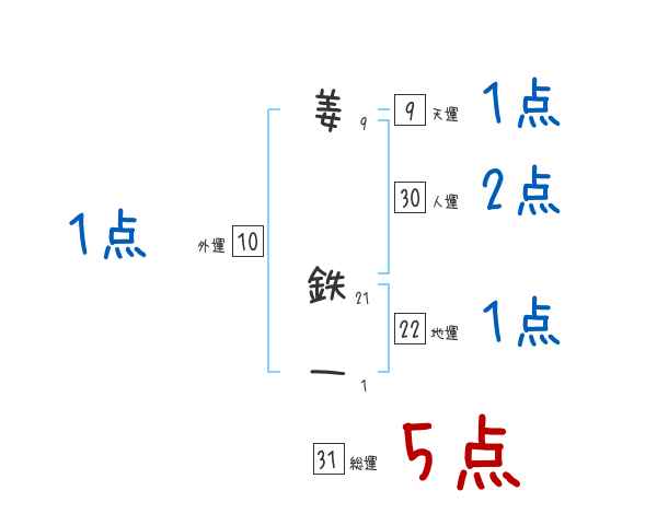 天運![]() | 姜鉄一さんの天運は9画の1つ星!消極的で才能を発揮することが苦手なことも。周りの意見に耳を傾けましょう。 家系が持つ宿命的な運勢を表します。祖先から受け継いだ苗字ですので自分の力が及びません。家柄を象徴します。 |