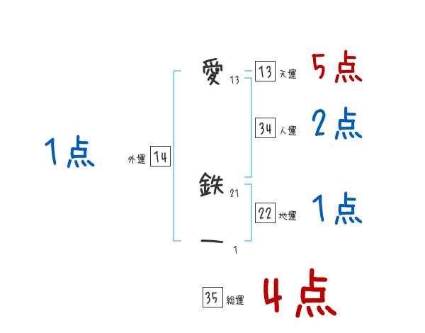 愛鉄一さんの画数の鑑定結果