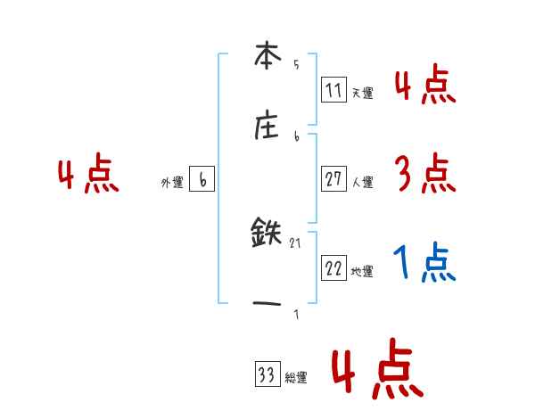 本庄鉄一さんの画数の鑑定結果