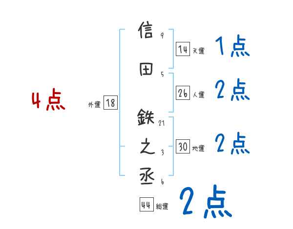 天運![]() | 信田鉄之丞さんの天運は14画の1つ星!人に対して優しいがストレスを溜め込みがち。人間関係のトラブルを避けるよう気をつけましょう。 家系が持つ宿命的な運勢を表します。祖先から受け継いだ苗字ですので自分の力が及びません。家柄を象徴します。 |