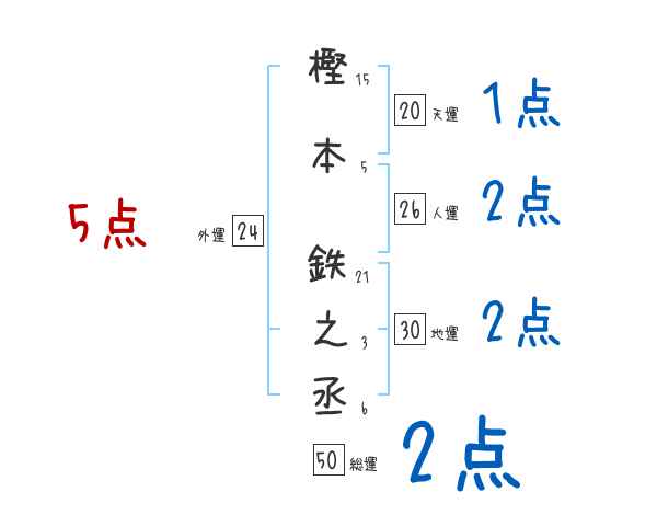 樫本鉄之丞さんの画数の鑑定結果