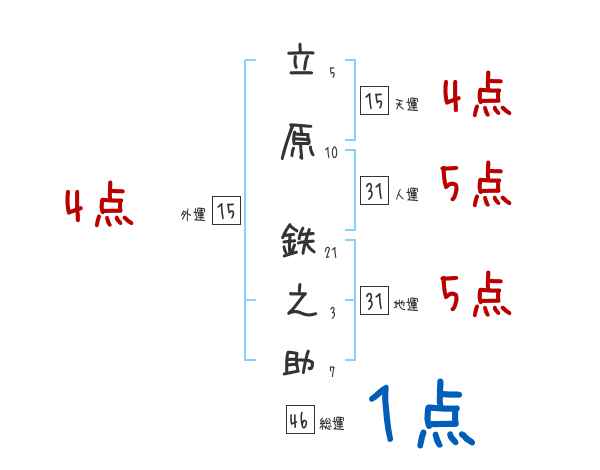 立原鉄之助さんの画数の鑑定結果