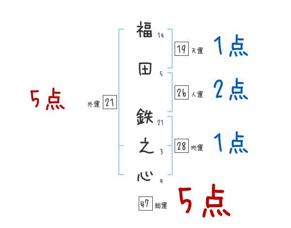 福田鉄之心さんの画数の鑑定結果