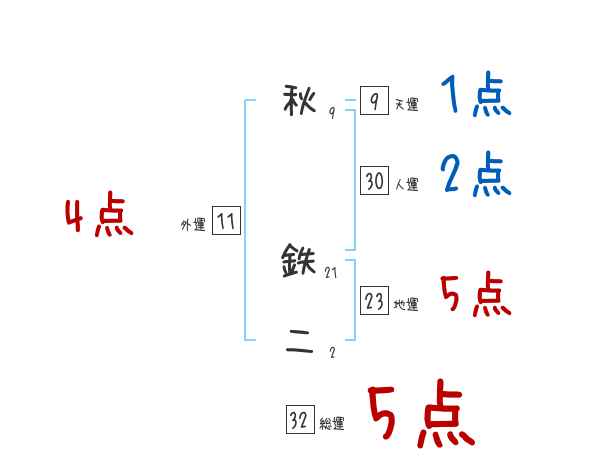 総運![]() | 秋鉄二さんの総運は32画の5つ星!柔軟性があり成功する。チャンスが多く金運が良い。 あなたの人生を表す1番重要な運勢です。生涯を通じて影響する総合運となり、主に50歳以降の晩年期に影響を及ぼします。 |