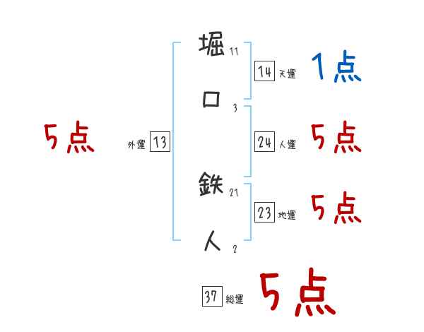 人運![]() | 堀口鉄人さんの人運は24画の5つ星!家庭運が良く順調な人生。金運にも恵まれる。 性格や才能などを表す2番目に重要な運勢です。人間関係や協調性、社会的な成功に影響します。主に20歳から50歳ぐらいまでの中年期の運勢を表します。 |