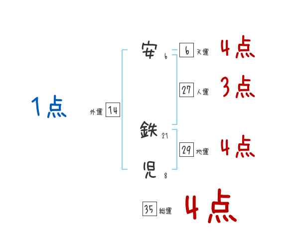 安鉄児さんの画数の鑑定結果