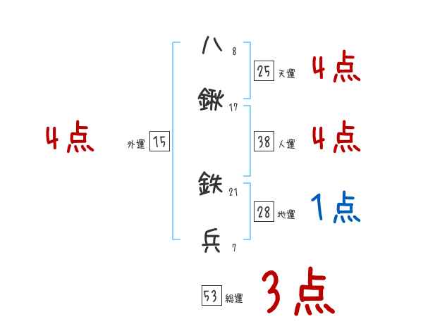八鍬鉄兵さんの画数の鑑定結果