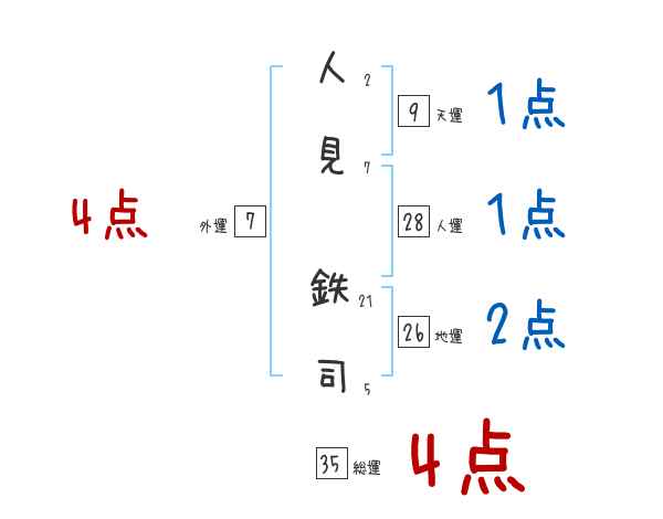 人見鉄司さんの画数の鑑定結果