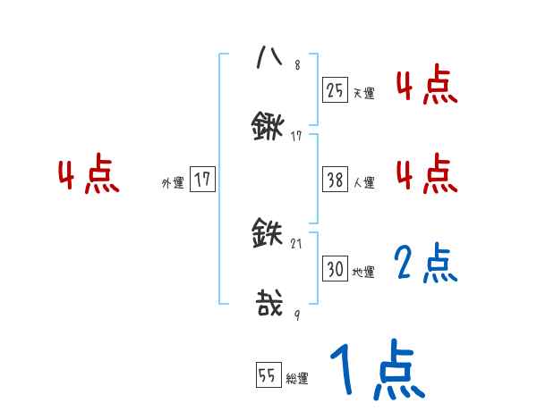 八鍬鉄哉さんの画数の鑑定結果
