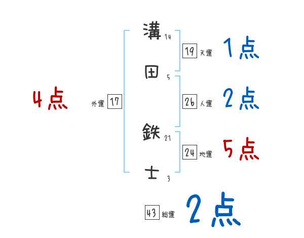 溝田鉄士さんの画数の鑑定結果