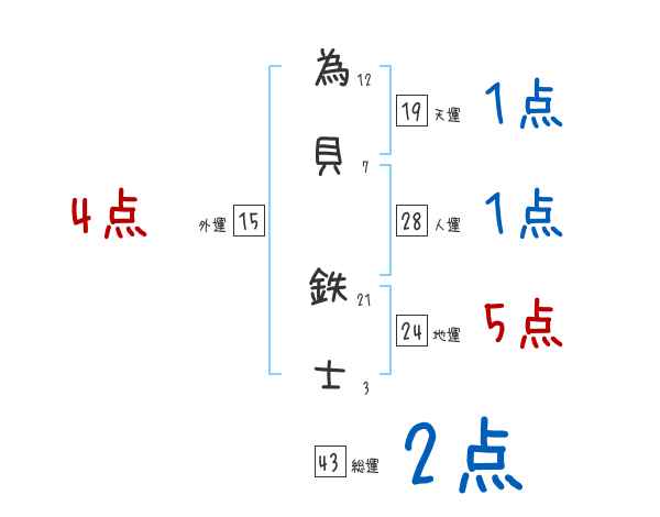 為貝鉄士さんの画数の鑑定結果