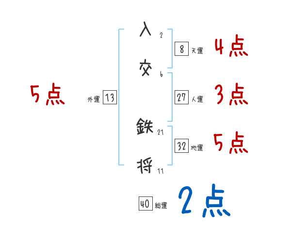 入交鉄将さんの画数の鑑定結果