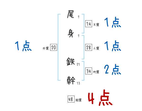 尾身鉄幹さんの画数の鑑定結果